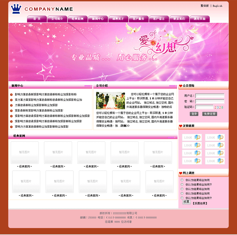 電腦科技 手機(jī) 數(shù)碼 軟件 家裝家具 衛(wèi)浴潔具 日用品 五金建材 裝飾 模具 機(jī)械 家居紡織 服裝 鞋帽 皮革 鮮花 禮品 工藝品 玩具 廣告設(shè)計(jì) 婚慶 攝影 影樓 家電 照明 電子 影音設(shè)備 辦公文具 體育 健身 食品 茶葉 飲料 煙酒 休閑娛樂 餐飲 咖啡 茶樓 珠寶 首飾 化妝品 保養(yǎng)品 養(yǎng)生美容 休閑 家政服務(wù) 汽車 配件 摩托 電動(dòng)車 電氣 儀器 儀表 設(shè)備 鐘表 眼鏡 配件 零件 環(huán)保能源 環(huán)保生態(tài) 節(jié)能 房地產(chǎn) 租賃 建筑 裝修 冶金 金屬 零件 配件 礦產(chǎn) 石油 化工 原料 農(nóng)業(yè) 生物技術(shù) 水產(chǎn)養(yǎng)殖 醫(yī)院 藥品 診所 保健品 展覽 展會(huì) 設(shè)計(jì) 慶典 傳媒 印刷 包裝 制造業(yè) 法律 會(huì)計(jì) 策劃咨詢 翻譯 金融 證券 貸款典當(dāng) 拍賣 家政 保潔 搬家公司 旅游 賓館 農(nóng)家樂 票務(wù) 運(yùn)動(dòng) 戶外 寵物用品 倉儲(chǔ) 貨運(yùn) 物流 租車 工業(yè)制品 橡膠 安防 維修 保養(yǎng) 廢料回收 學(xué)校 文化 教育 培訓(xùn) 公司注冊(cè) 商標(biāo)專利 論壇 BBS 問答平臺(tái) 企業(yè)半定制型 利于SEO 企業(yè)DIV型 利于SEO 政府門戶 協(xié)會(huì) 機(jī)構(gòu) 行業(yè)門戶 集團(tuán) 貿(mào)易 交友門戶 分類信息網(wǎng) 學(xué)校門戶 教育門戶 旅游門戶 農(nóng)業(yè)門戶 醫(yī)院門戶 醫(yī)療門戶 商貿(mào)門戶 信息門戶 政府門戶 集團(tuán)門戶